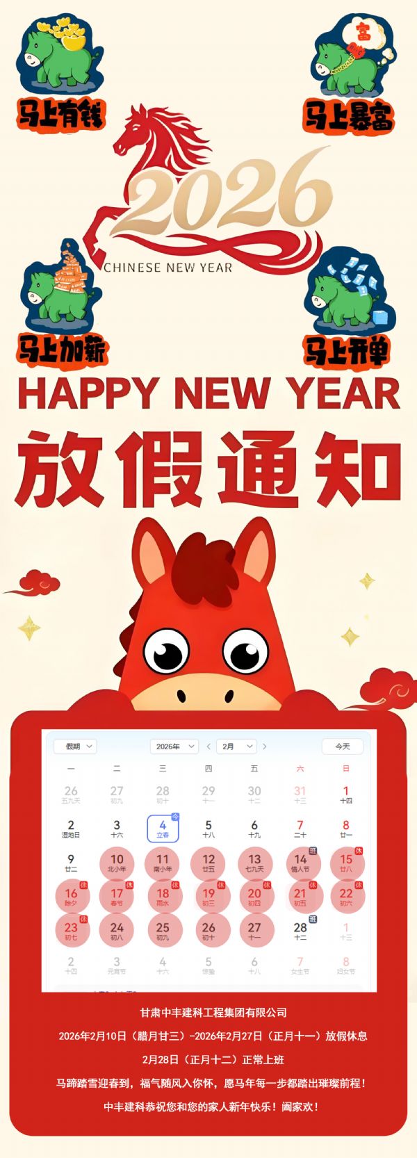 關(guān)于2026年中豐建科(甘肅)集團春節(jié)放假的通知